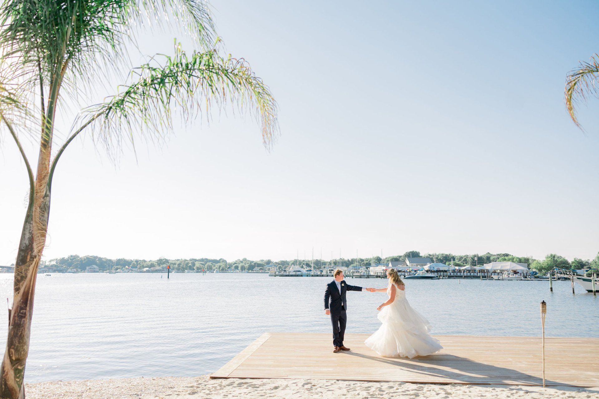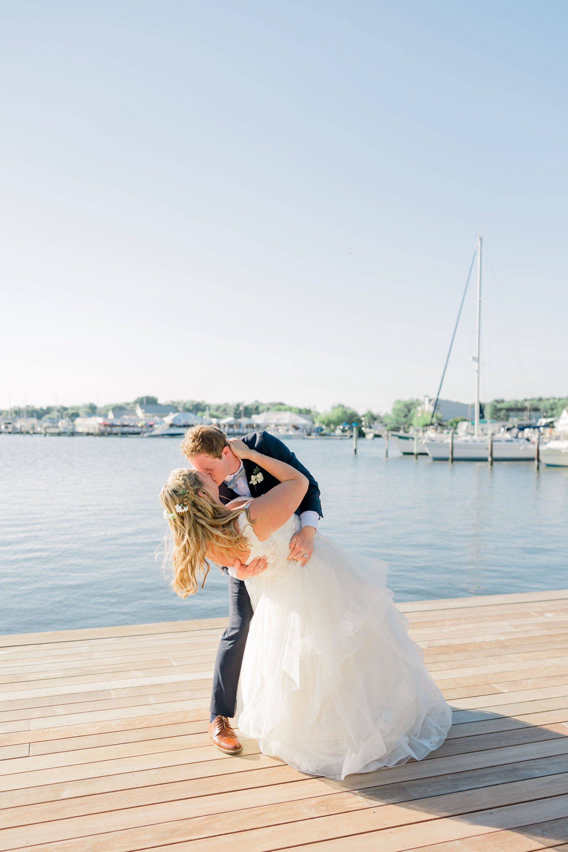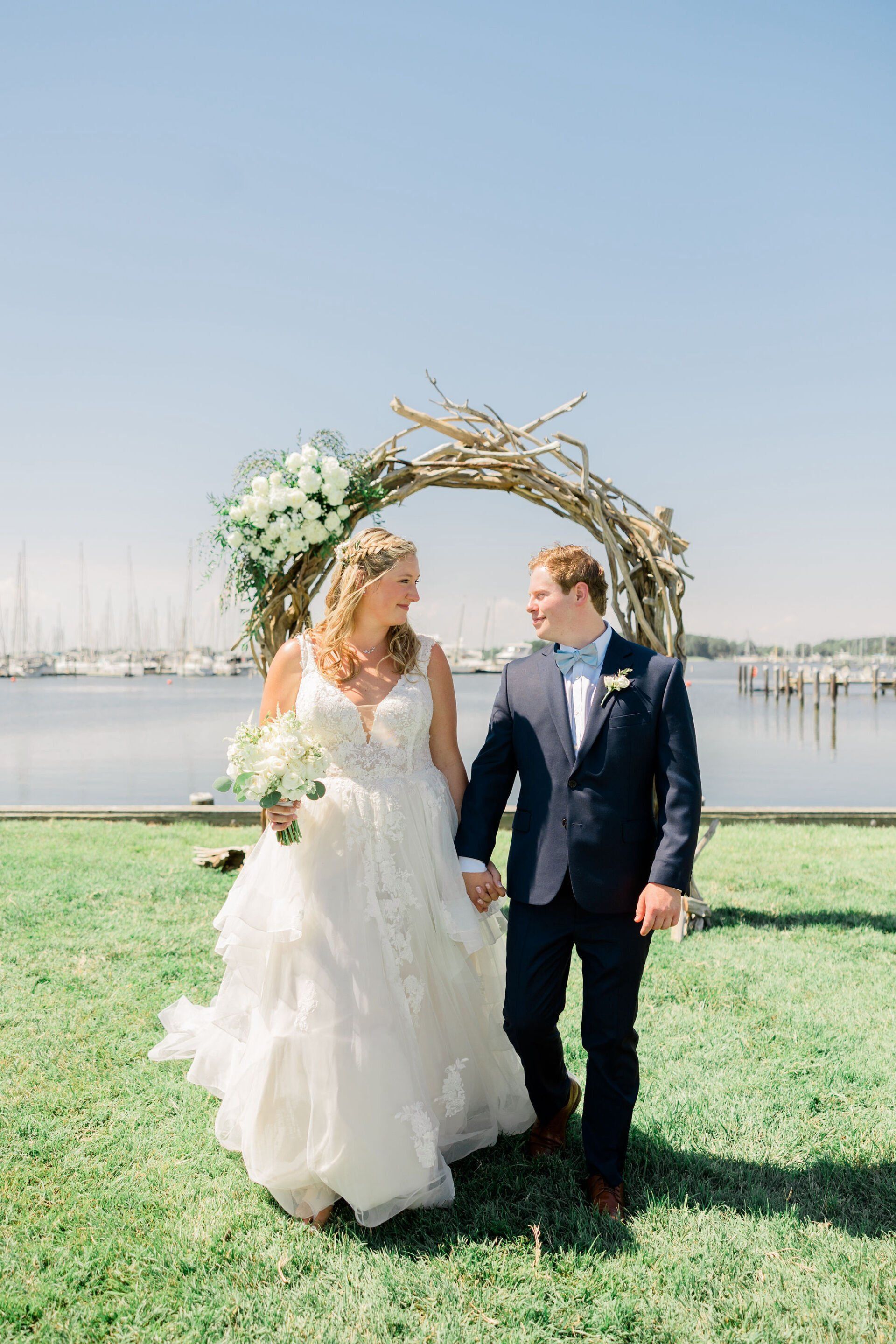 A waterfront wedding at the Inn at Haven Harbour was the perfect fit for nautical newlyweds Caroline and Brandon. Their special day was filled with personal details that showcased their love for the sea, as well as for one another – including a driftwood arch, ceremony departure by boat and ocean-inspired band.