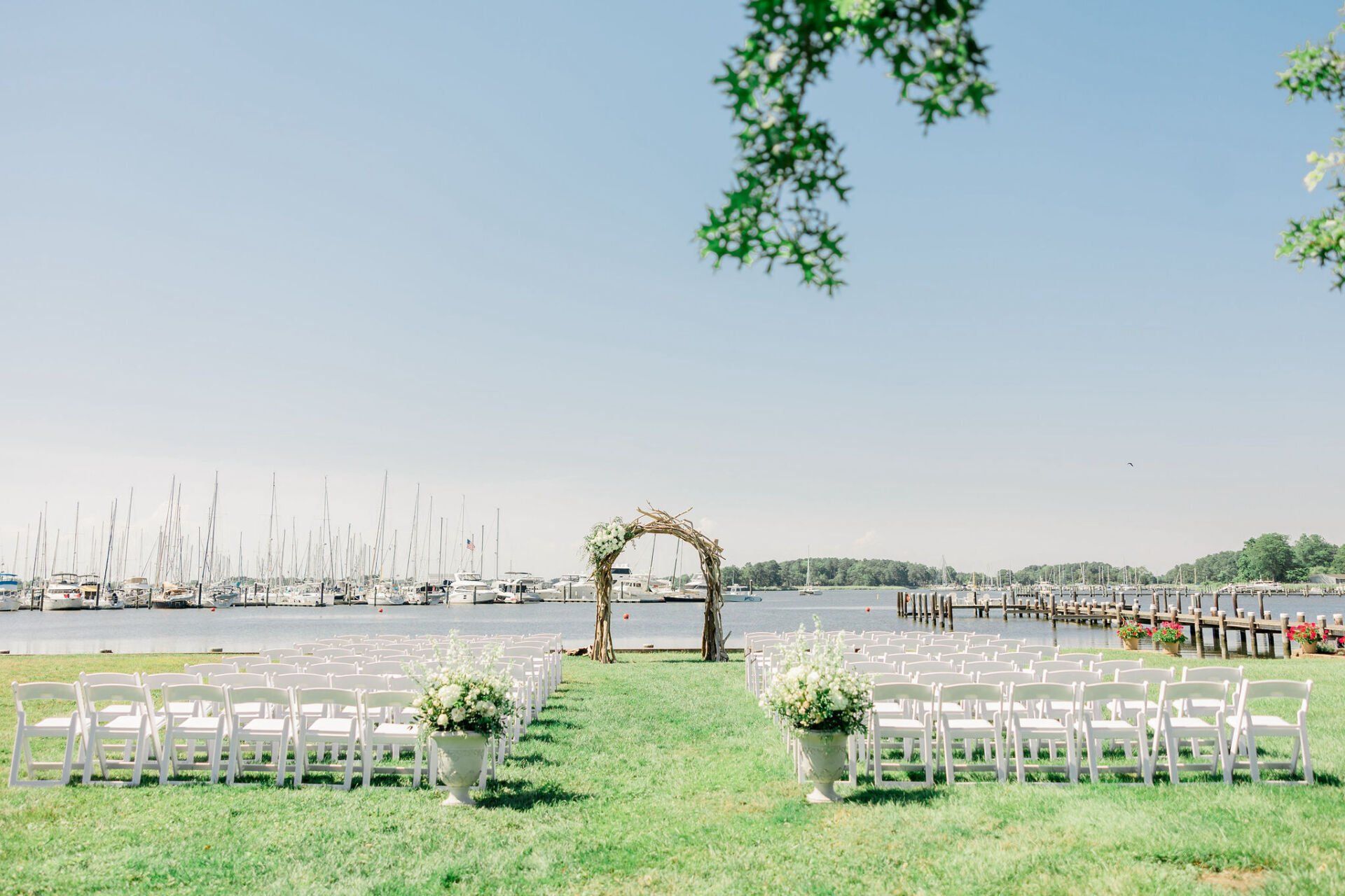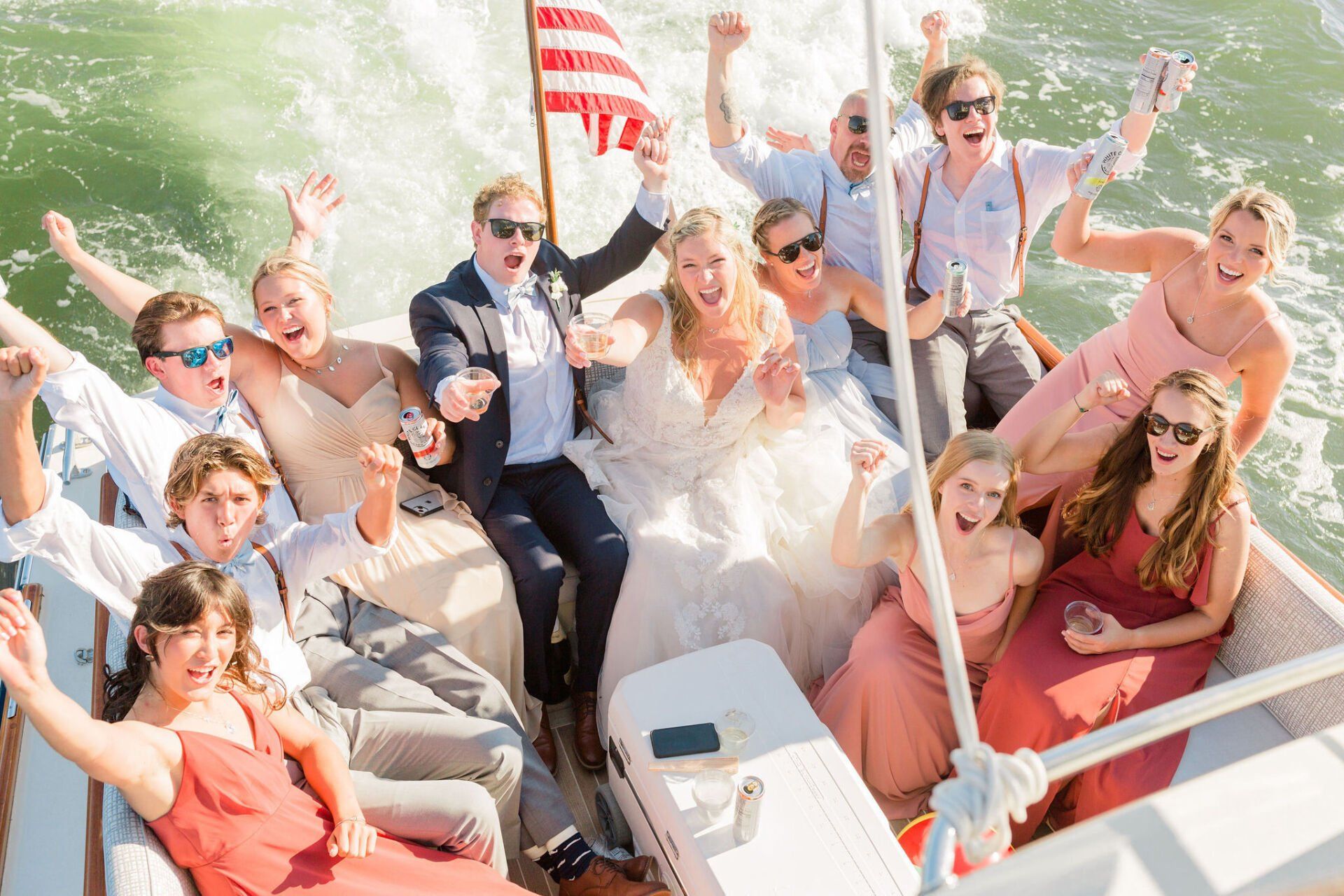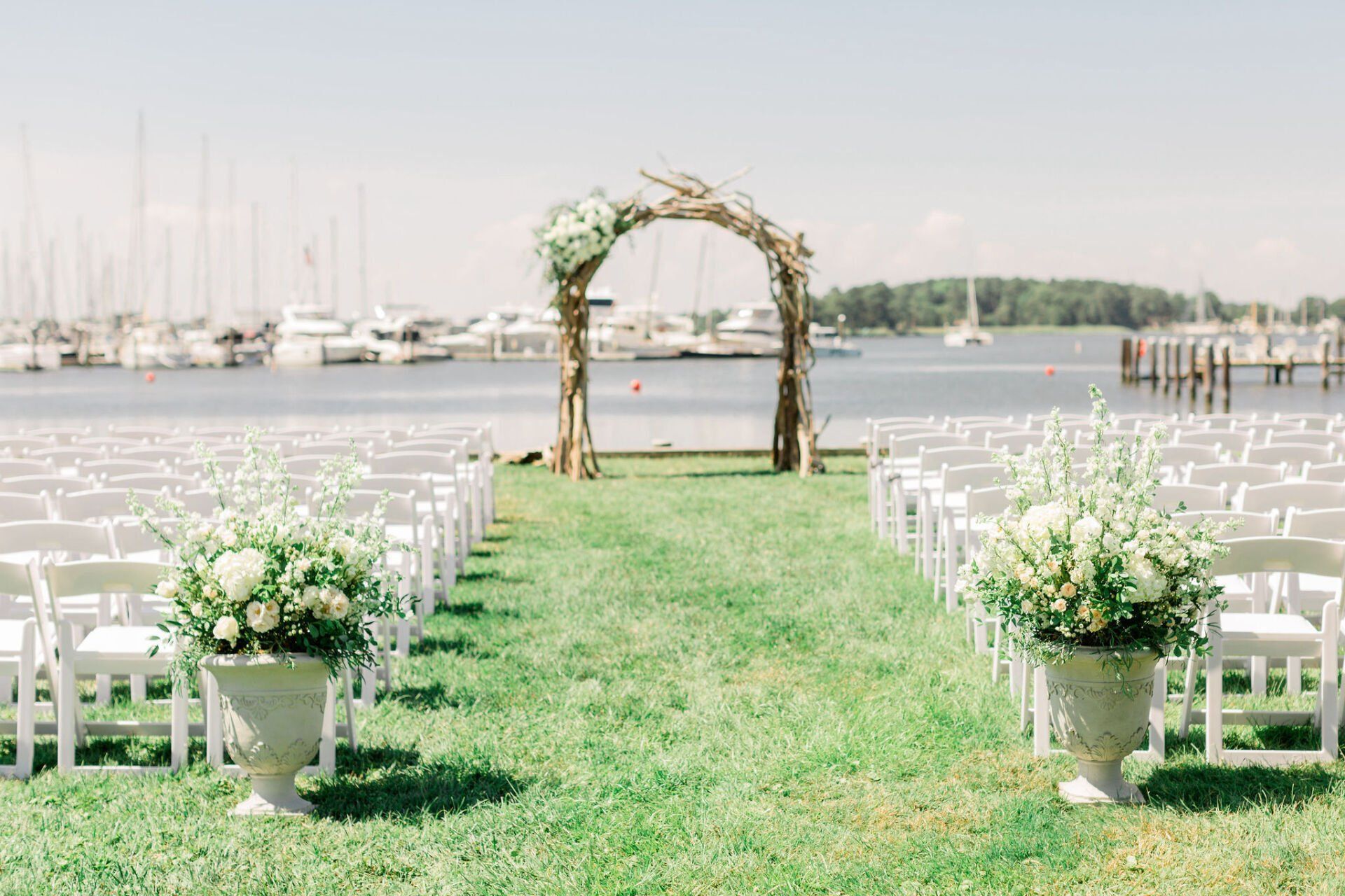 A waterfront wedding at the Inn at Haven Harbour was the perfect fit for nautical newlyweds Caroline and Brandon. Their special day was filled with personal details that showcased their love for the sea, as well as for one another – including a driftwood arch, ceremony departure by boat and ocean-inspired band.