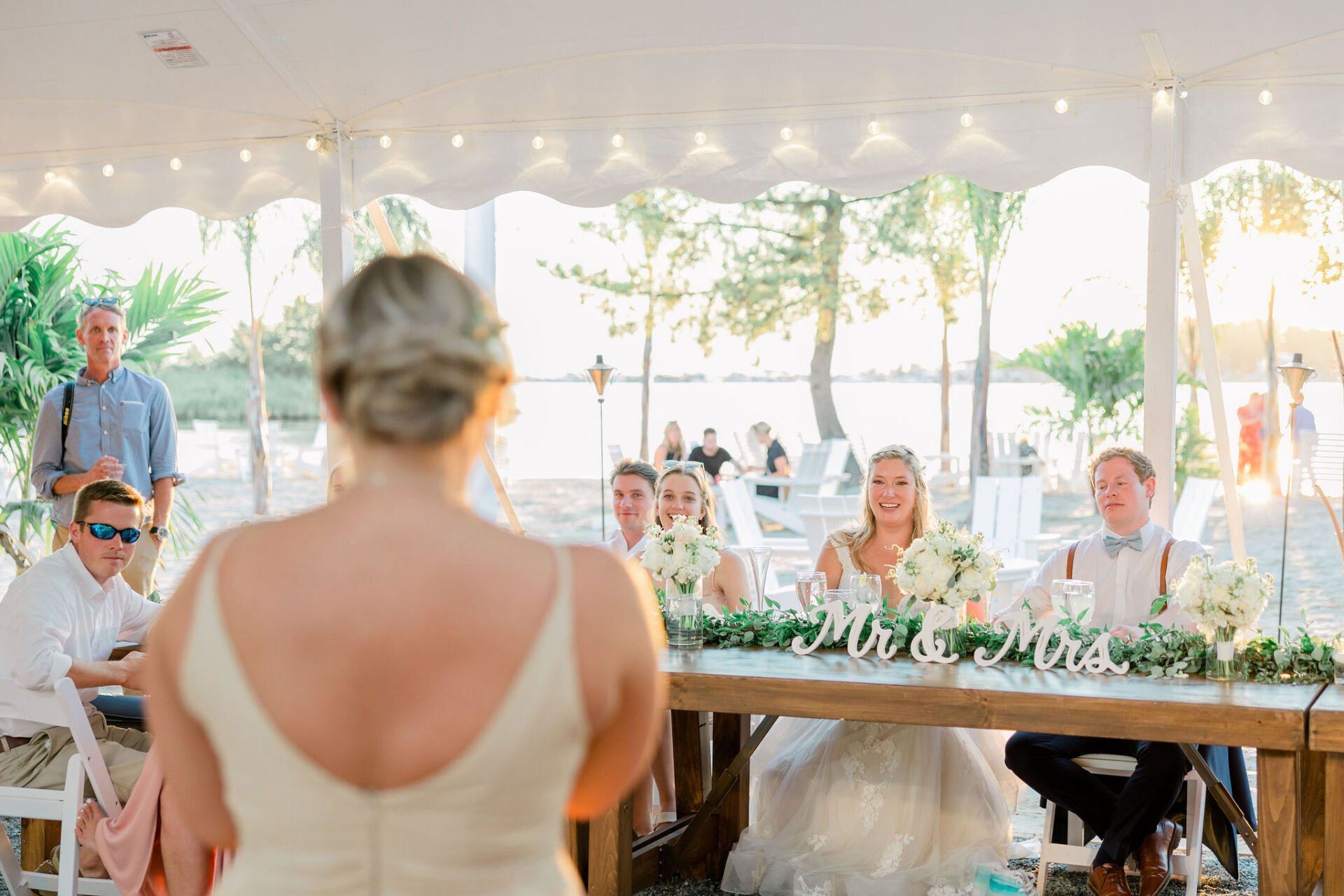 "A beach wedding was an obvious choice for us," wrote Caroline Petosa, who tied the knot with husband Brandon on June 25. "Not only is the beach our favorite place to be, but it's where our love story truly began. Haven Harbour provided the tropical island getaway of our dreams, and gave us a place where the whole family could celebrate the wedding together!"