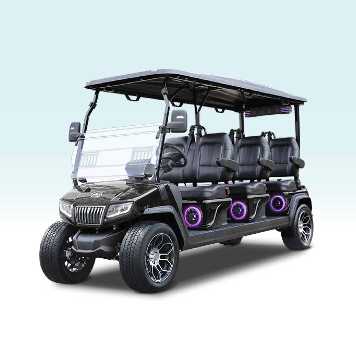 Drive in style with two-tone seats with foldable armrests, adjustable steering column and a multi-functional dashboard with 9” touchscreen and back-up camera. The LED lighting and storage trunk add convenience, while the EM brake and aluminum wheels deliver a reliable driving experience.